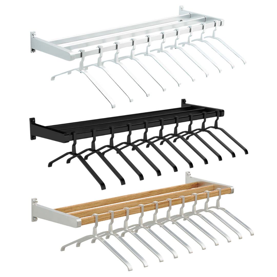 Het Gardelux systeem is verkrijgbaar in lengtes van 1000 tot 3000 mm. Het frame, vervaardigd uit geanodiseerd aluminium, is duurzaam en bestand tegen intensief gebruik. Dit systeem bevat een enkele rij kledinghaakjes